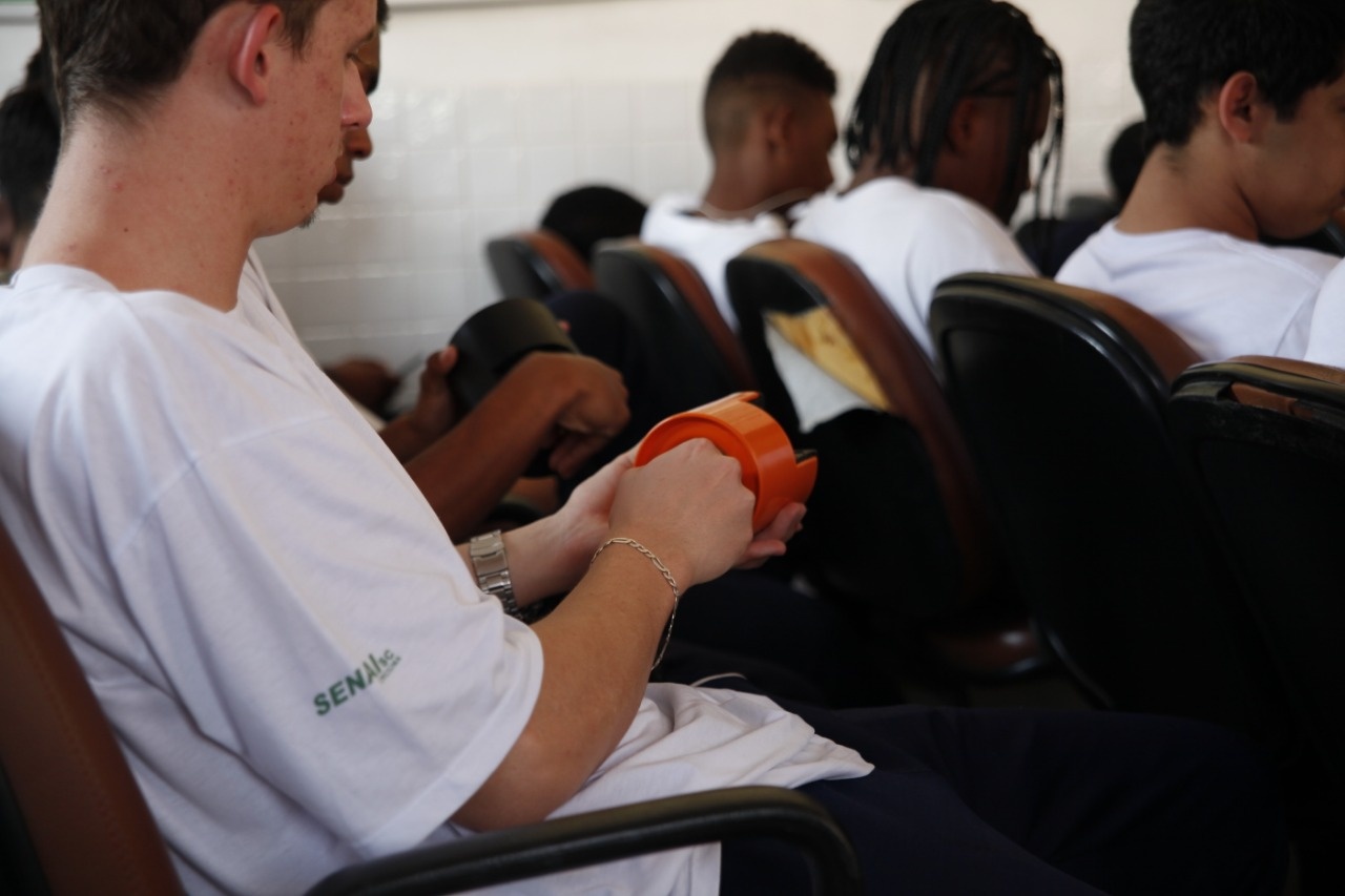 Participaram do treinamento 74 jovens alunos do Curso de Mecãnica, ministrado em parceria com o SENAI para alunos de 14 a 18 anos.