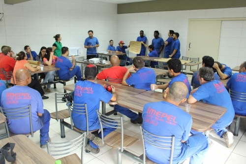 Os treinamentos voltados à segurança do trabalho começaram a ser realizados na Imepel no ano passado. A campanha “Seu corpo não tem peças de reposição” trabalhou temas como proteção dos membros inferiores – como pernas e pés, proteção dos olhos, proteção das mãos e proteção auditiva.