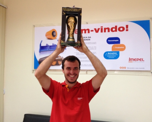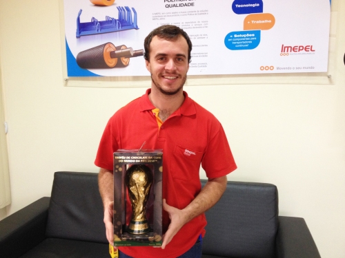 Foi premiado nesta terça-feira, 24, com uma réplica da taça da Copa do Mundo toda de chocolate, o colaborador da Imepel Indústria Mecânica, Antônio Inácio, que deu os melhores palpites para o placar das três primeiras partidas da seleção brasileira na maior competição mundial de futebol. O vencedor acertou os placares dos jogos entre Brasil e Croácia (3 a 1), e Brasil e Camarões (4 a 1).