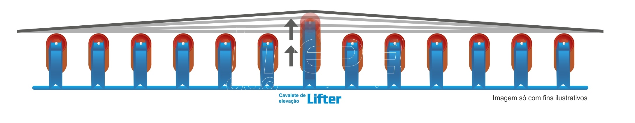 Ao acionado, o Lifter® eleva a correia transportadora, retirando o contato da correia com os rolos adjacentes, o que colabora para a diminuição do período de parada, além de promover redução de custos com a utilização de gruas e outros equipamentos.