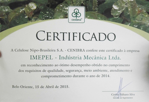 Pela terceira vez, Imepel é certificada como fornecedor destaque da Cenibra
