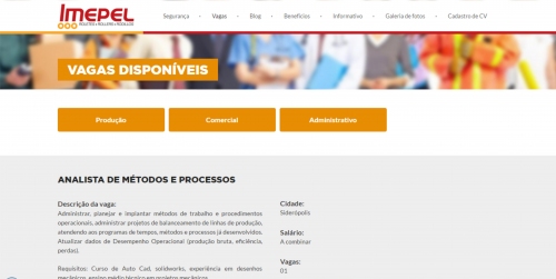 Com o lançamento, a Imepel passa a ser a única indústria da Região Sul a contar com um site exclusivo para o Departamento de Recursos Humanos.