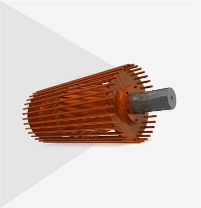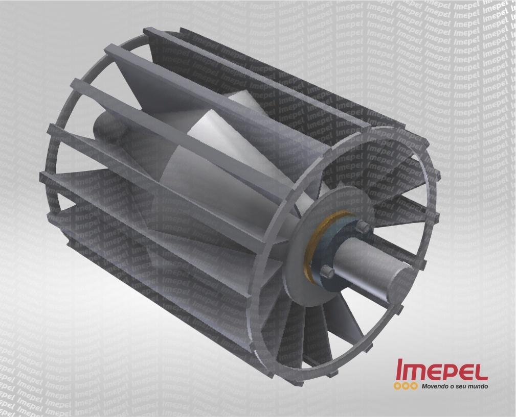 Usualmente utilizados en el retorno y / o acoplados a la motorización del transportador, posee aletas radiales en su cuerpo con la función de evitar que el material transportado al caer en el lado de retorno sea presionado contra la correa, y así dañándolo.