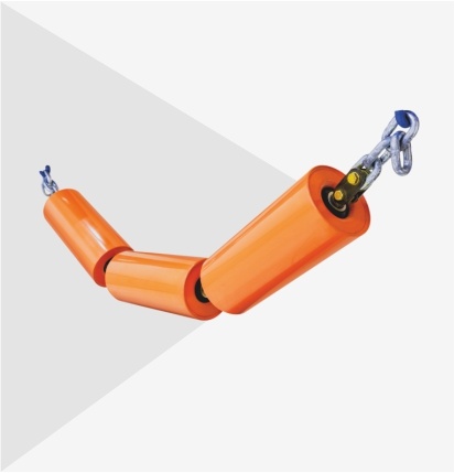 Sua forma construtiva permite a livre movimentação transversal e longitudinal, amoldando-se ao formato da correia e auxiliando sua centralização. Sua fixação pode ser feita sobre cabos de aço para transporte de material em terrenos acidentados ou de difícil acesso.