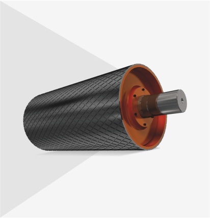 Utilizados em correias reversíveis, usualmente acoplados a motorização do transportador , possui revestimento de borracha com ranhuras a 60º nos dois sentidos com função de aumentar a aderência, evitando o deslizamento entre correia e tambor.