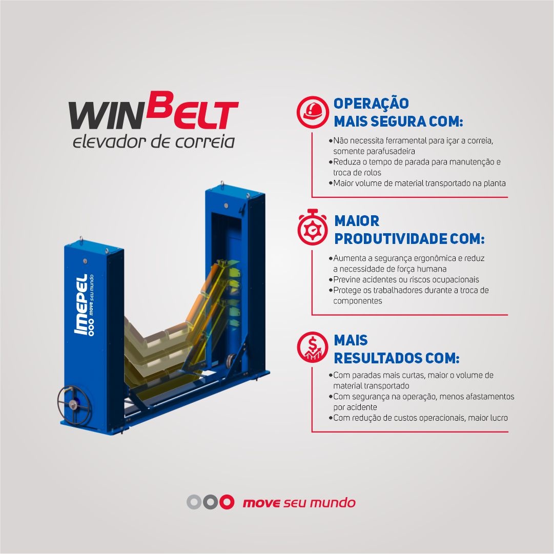 O Winbelt foi desenvolvido pela Imepel visando a segurança dos operadores nas atividades de elevação de correias transportadoras, tendo como resultado a otimização de tempos e de recursos para a substituição de rolos ou manutenção de equipamentos como balanças.