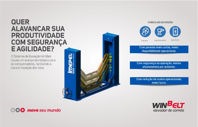 Com vários anos no setor de manutenção de transportadores contínuos, José Ronaldo, Especialista em Transportadores e Consultor Técnico da IMEPEL, enfatiza que “O Sistema de Elevação WinBelt trouxe um avanço tecnológico para os transportadores, que pode, com essa estrutura, facilitar a troca e inspeção dos rolos. A troca dos rolos é um trabalho diário, que demanda precisão e agilidade. Hoje, com essa tecnologia, apenas uma pessoa pode manusear o equipamento de maneira segura e prática, trazendo assim,  precisão e bem estar para a organização”.