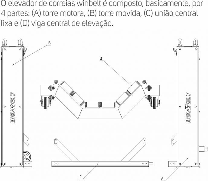 O WinBelt é composto, basicamente, por quatro partes: torre motora, torre movida, união central fixa e viga central de elevação, projetado para operar de forma segura, sob as mais severas condições de trabalho. O tempo de içamento é de aproximadamente 1 minuto, a carga aplicada sobre ele pode ser de até 2,6 toneladas, e com apenas um aparelho, deixa livre aproximadamente 24 cavaletes com cerca 72 rolos.